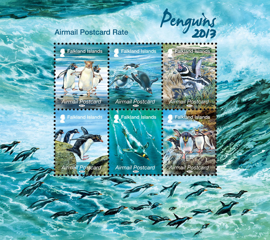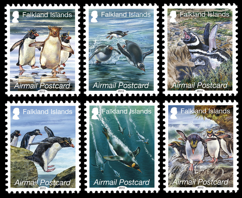Las islas Falkland (Malvinas para los argentinos), acaban de lanzar una serie de seis sellos para satisfacer la tarifa actual destinada a las tarjetas postales a cualquier lugar del mundo, se aprovecha que es la tarifa más usual (65 peniques) durante el verano austral y que es utilizada por miles de cruceristas que llegan a la región en busca de nuevas sensaciones y cada sello recoge una de las especies habituales por estas desangeladas islas australes donde el viento es una constante y el frío una incuestionable realidad.