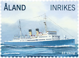 El primer navío que se bautizó Viking Line en esta ruta y que aparece en el facial acifrado con tarifa nacional se construyó en Dumbarton (Escocia) en 1924, prestó servicio como S/S Dinard para la Southern Railway Company, transportaba 900 pasajeros, 85 automóviles y tres camiones con remolque en cada travesía, estuvo en servicio entre el 1.06.1959 y el 12.08.1970. En el sello podemos admirar su complejo sistema de antenas, lamentablemente, a pesar de lanzar un CQ el verano pasado para intentar localizar alguna QSL y su señal de llamada, no hemos tenido éxito. En los sesenta había en España un manual en el que aparecían las señales de llamada de todos los navíos del mundo, por supuesto era de uso restringido y no estaba al servicio del público sino para el encaminamiento del servicio telegráfico, pero no hemos logrado localizar ese material histórico que habría completado la ficha del barco filatélicamente hablando.