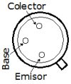 Para identificar los terminales, tienes que tomar el transistor por su capuchón con dos dedos y colocarlo con las patillas mirando hacia ti, de manera que el triángulo que forman las tres patillas tenga su vértice hacia la izquierda. Así dispuesto, la patilla de la izquierda es la base, la de abajo es el emisor, y la de arriba el colector.
