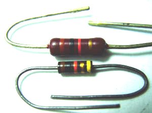 El valor de una resistencia se puede leer a simple vista sin necesidad de polímetro, observando los colores que tienen dibujados sobre el cuerpo. Mirando de izquierda a derecha, el primer y segundo valor son las unidades y decenas, el tercer valor el multiplicador, y el cuarto la tolerancia (5% o 10%).